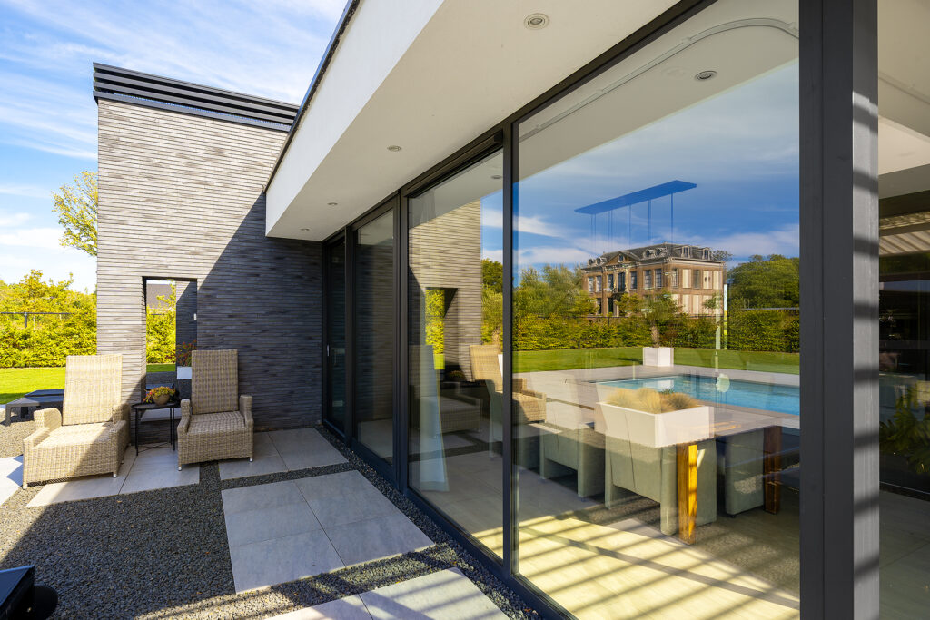 Tijdens het ontwerpproces heb ik veel nadruk gelegd op de uitgekiende zichtlijnen, de onderlinge relaties tussen de verschillende ruimtes, de optimale bezonning en het maximaliseren van het tuincontact. Het vele glas speelt hierin een cruciale rol en versterkt de naadloze relatie tussen binnen en buiten.